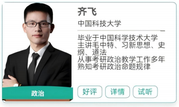 同样深耕政治教学的齐飞老师,主攻马克思主义中国化专业,对考研政治命题规律了如指掌。他的授课逻辑清晰、重点突出,还独创了一套高效记忆方法,能将枯燥的知识点与解题技巧、学习趣味结合起来,让学员在轻松氛围中掌握考点。学员们评价:“齐飞老师讲课太清晰了,听完之后知识点记得特别牢!”“上齐老师的课特别有激情,备考的疲惫感都少了很多!”
