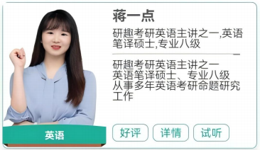 英语学科的师资团队同样实力强劲。英语教研室组长蒋一点老师,不仅是英语笔译硕士、专业八级持有者,还拥有多年考研英语命题研究经验。她的课堂干货满满,讲解细致耐心,从词汇到长难句,再到阅读、写作技巧,都能一一拆解,学员反馈 “蒋老师讲得特别详细,跟着学能实实在在看到进步”。